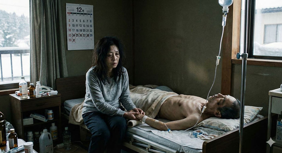 日を追うごとに夫の体は枯れ木のようになり、 たった9日間で体重は3.6kgも減少しました。骨が浮き出た夫の背中をさするたび、逃げ場のない自責の念が私を追い詰めます。「このままでは、夫は死んでしまう」「私が、私がこの人を殺してしまう……」。 短い呼吸を繰り返す夫の傍らで、私はただ、暗闇に呑み込まれそうな自分を必死に支えることしかできませんでした。
